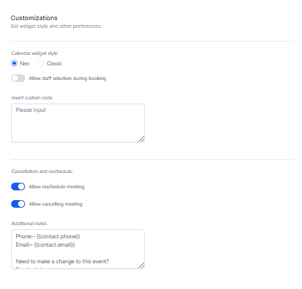 - Allow Staff Selection for the booking widget by toggling a switch on or off.