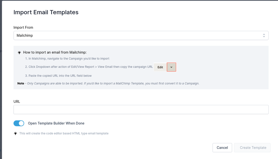 This article will teach you how to import your email templates from Mailchimp. This can be helpful to save you time, in case you were using Mailchimp before and have all your email templates there.
