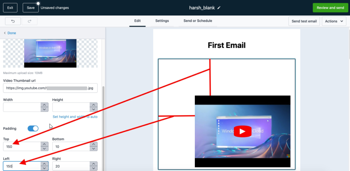 - The video will be aligned on the left side by default. Unlike images, aligning them using the align attribute is impossible, but you can align them through padding inside a two or 3-column layout.