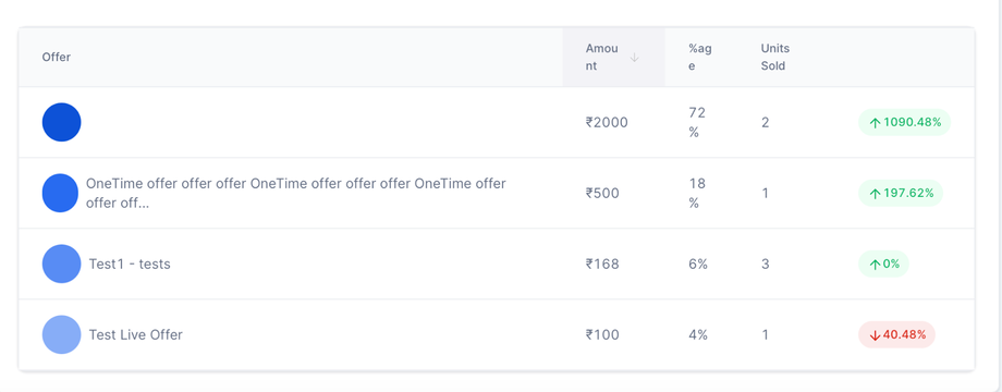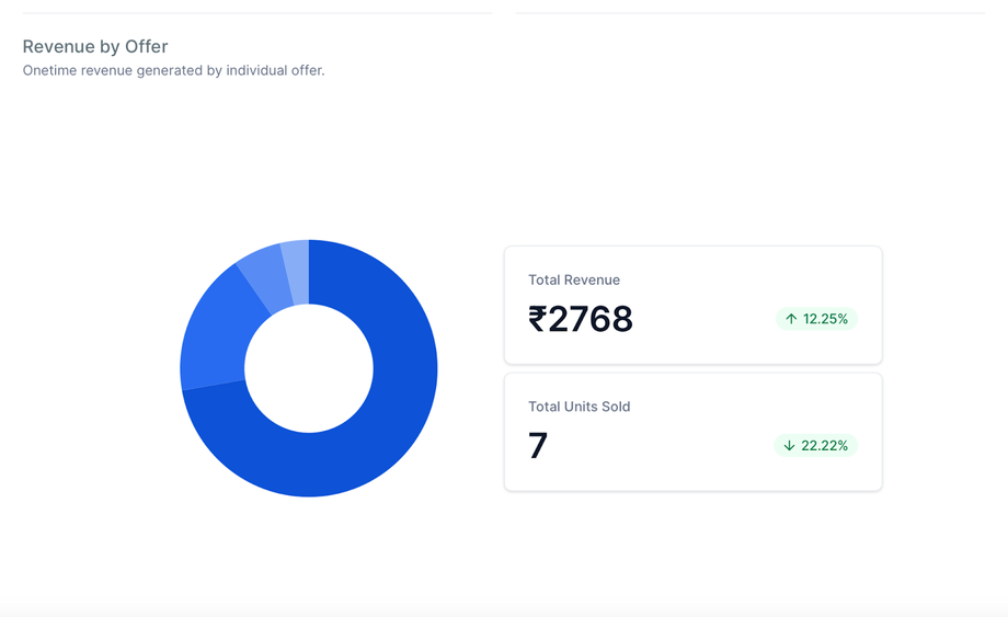 - Offer Distribution: The New Revenue tab also shows the distribution of the top four offers in the given date range, units sold, and total revenue for the selected filters.