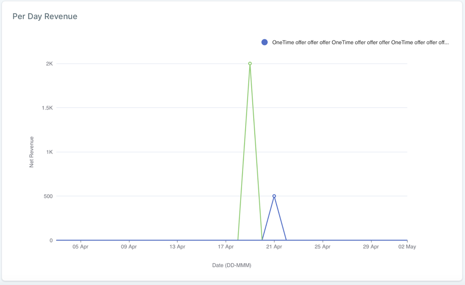 Net Revenue Tab: This is the default view of Revenue Analytics. It displays the data for one-time purchases.