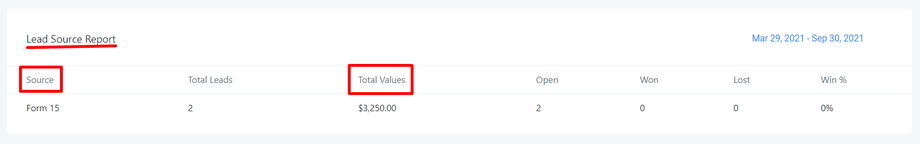 - Lead Source Report: Here, you can see where your leads came from and their values.